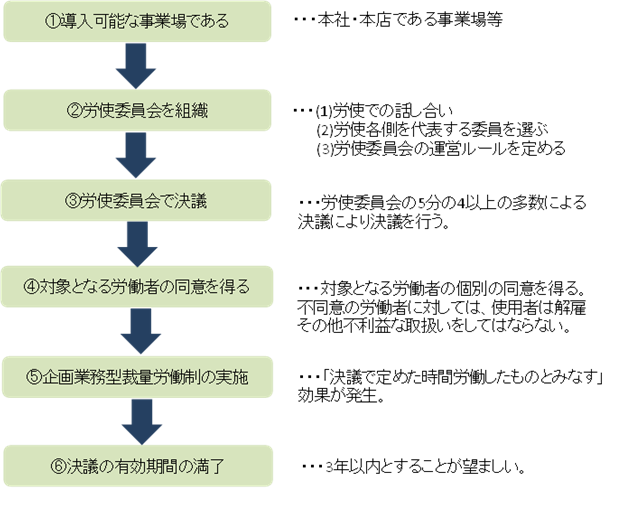事業運営上の重要な決定が行われる企業の本社などにおいて企画、立案、調査及び分析を行う労働者を対象とした制度です。