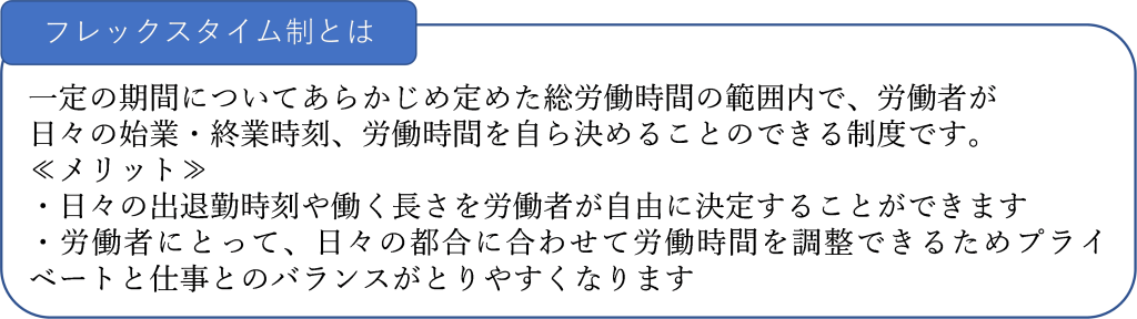 また、フレックスタイム制の導入にあたっては、次の二点の要件があります。