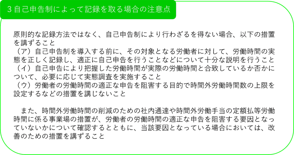 自己申告制によって記録をとる場合の注意点