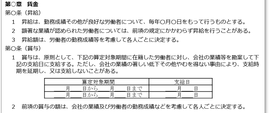 • (2)「賞与を支給することがある」、や「昇給する場合がある」等曖昧な規定は不可