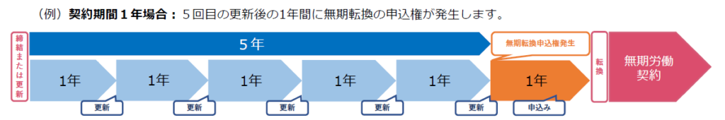まず、明示の対象となる従業員ですが、全ての有期契約従業員ではなく、「無期転換申込権」が発生する従業員のみです。無期転換申込権とは、同じ会社と有期契約従業員との間で、契約期間が通算して5年を超過して更新された場合、当該従業員からの申込により、有期契約が無期契約に転換されるルールのことをいいます。